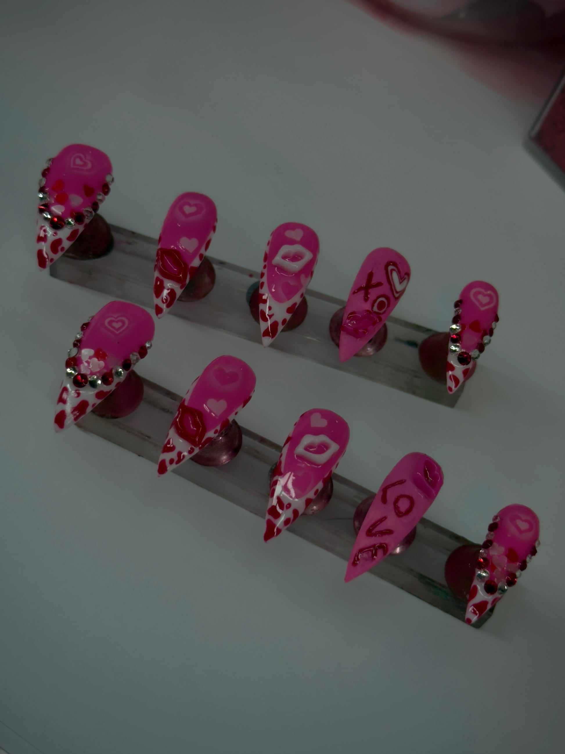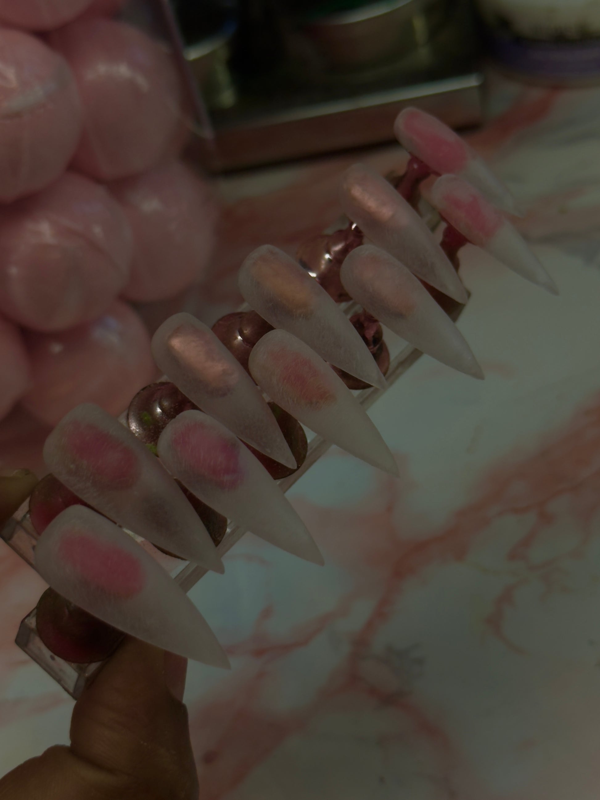 - Apply press-on nails, press firmly for 30–60 seconds