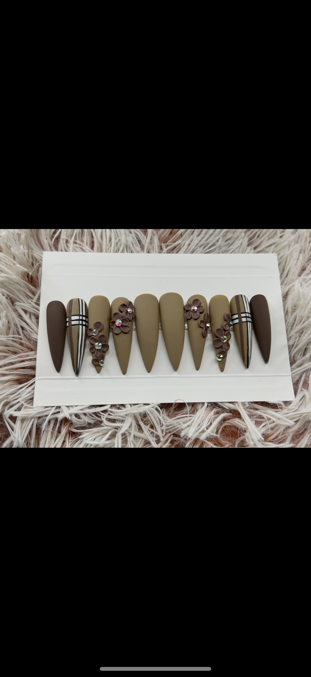Extremely durable presson nails. With proper application you can wear these for up to a year. Everything you need for application is included with the purchase of your nails.